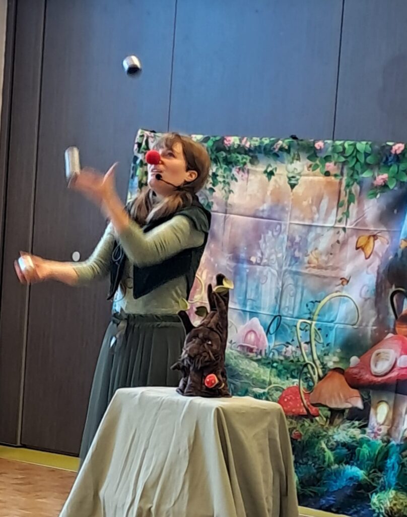 Durant 1 heure, j’emmène les enfants à travers des mondes fantastiques et merveilleux. Pour donner vie aux récits, j’utilise des marionnettes, des kamishibaïs (petits théâtres en bois japonais) et des instruments de musique (hand pan, bol tibétain, tambour, maracas, carillons…). J’intègre aussi des jeux de balles, des arceaux, des foulards et du chant pour enrichir mes spectacles. Et pour les rendre encore plus immersifs, j’ajoute une dose d’interactivité en impliquant les enfants dans l’histoire !